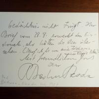 1927-2019, österr. Pianist - E. postal. Ansichtskarte (antikes Spinett im Museum des Brüsseler Konservato-riums) mit U., (Wien, Brüssel) 23.10.1963. An H. Strauß (von Strasbourg nach Commerey nachgesandt). ...Maintenon j'irai au Japan...J'espère, cependant de pouvoir faire quelque chose à Noël après ma rentrée... Beiliegt e. Br.karte mit e. Notenzeile (sein Nachname in Noten), e. Zeilen und U., 2 S.
