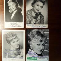 1927-2025, Schauspielerin - 4 Pfo. (1954, 57, 67 und 87), je mit U. Beiliegt kl. mont. Bild aus Zeitschrift (zus. mit ihrem Gatten, dem Schauspieler und Regisseur Erwin Strahl, 1929-2011, bei Proben zu einer Lesung mit Musik , ca. 1970) mit beiden U.