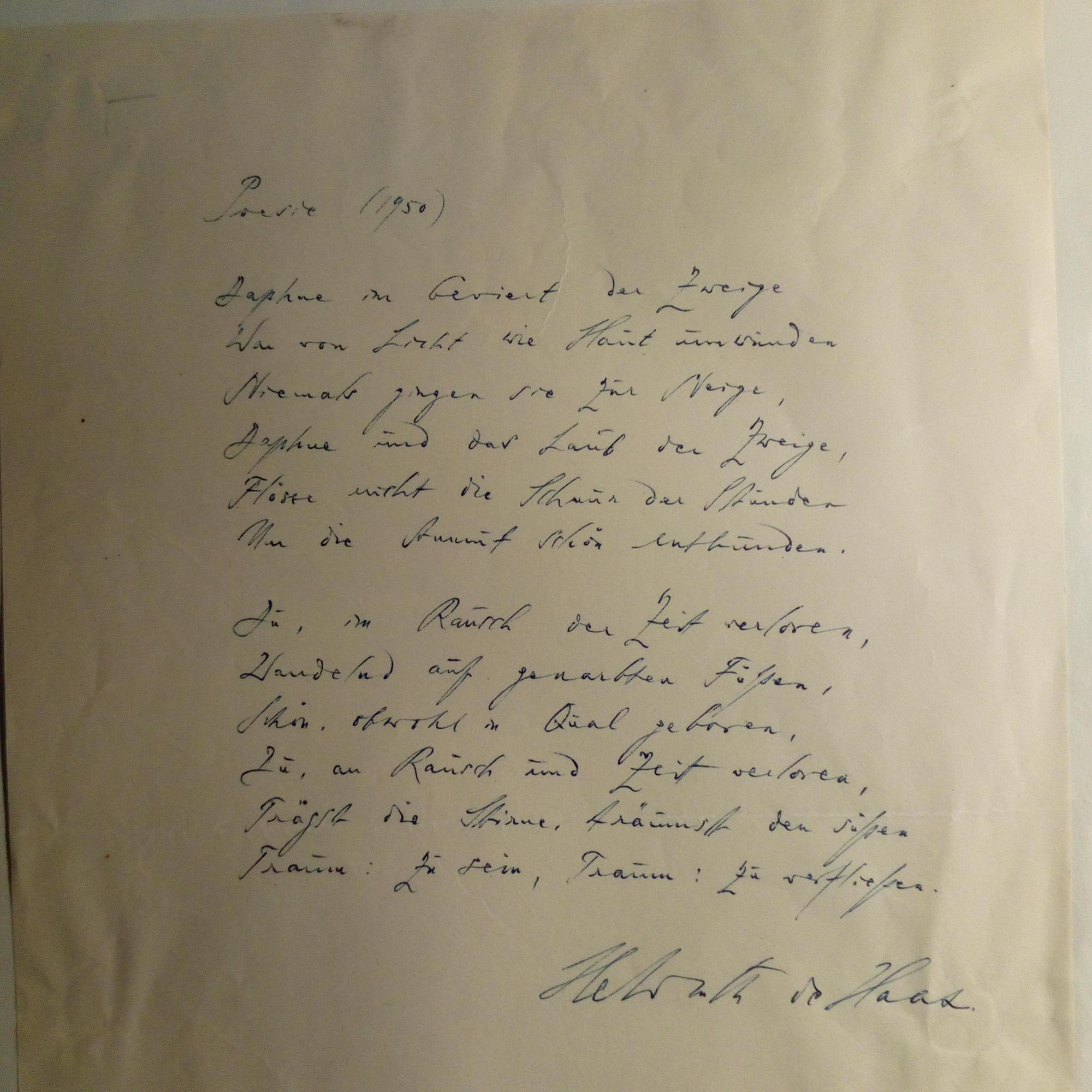 1928-70, Lyriker - E. Gedicht ("Poesie", 2 Str. à 6 Z.) m. U., 1 S. 4°, mont.