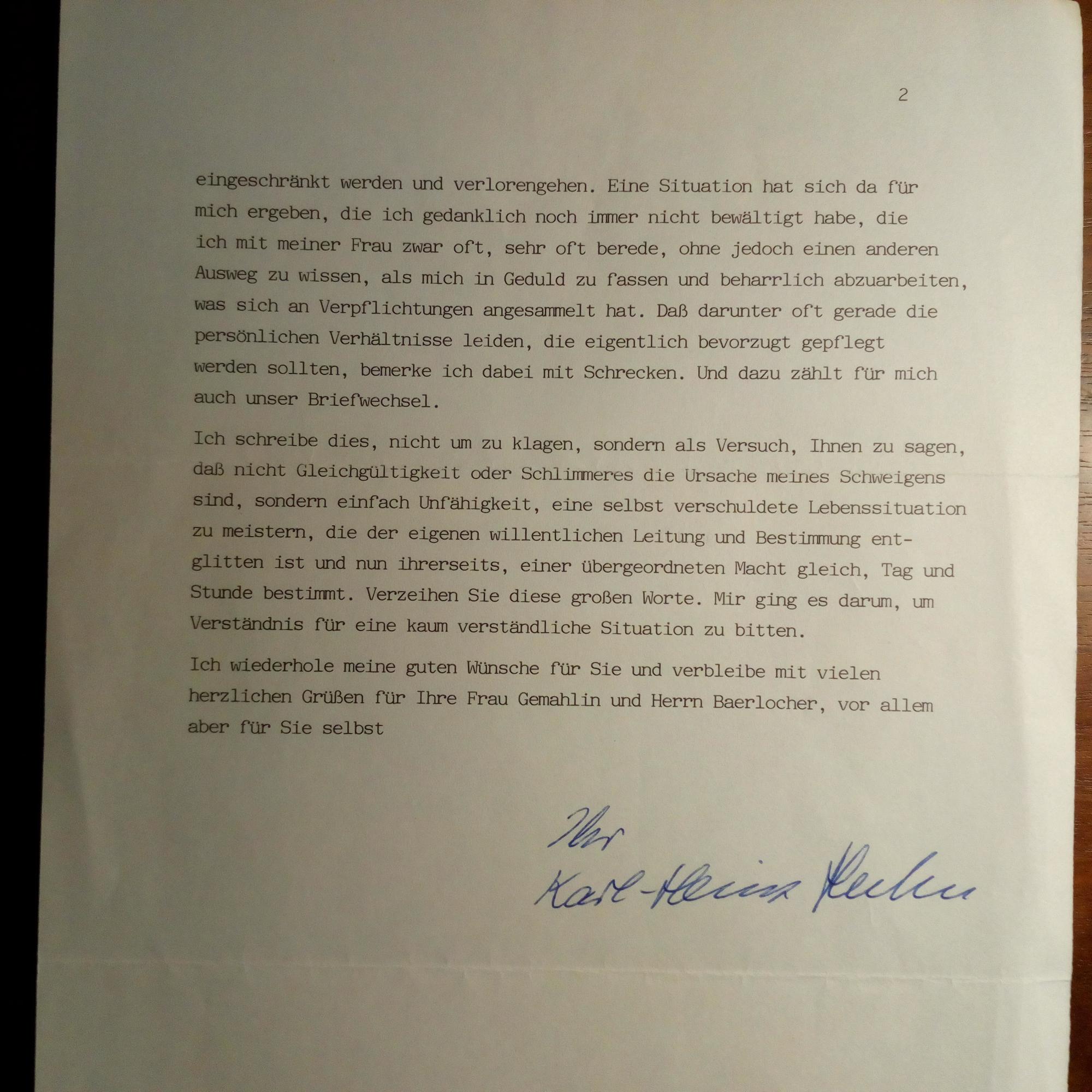 1921-90, Literaturhistoriker - Brief mit U., Weimar 31.5.1988, 1 ¾ S. 4°, dicht geschr., Briefkopf als Präsident der "Goethe-Gesellschaft". An den Archäologen und Numismatiker Hans-Markus von Kaenel (geb. 1947) in Frankfurt: Gratuliert zum 40. Geb. und schildert seine schlechten Lebensverhältnisse. Beiliegt e. Briefkarte mit U., 2 S., dicht beschr., privater Briefkopf. Einladung für dens.
