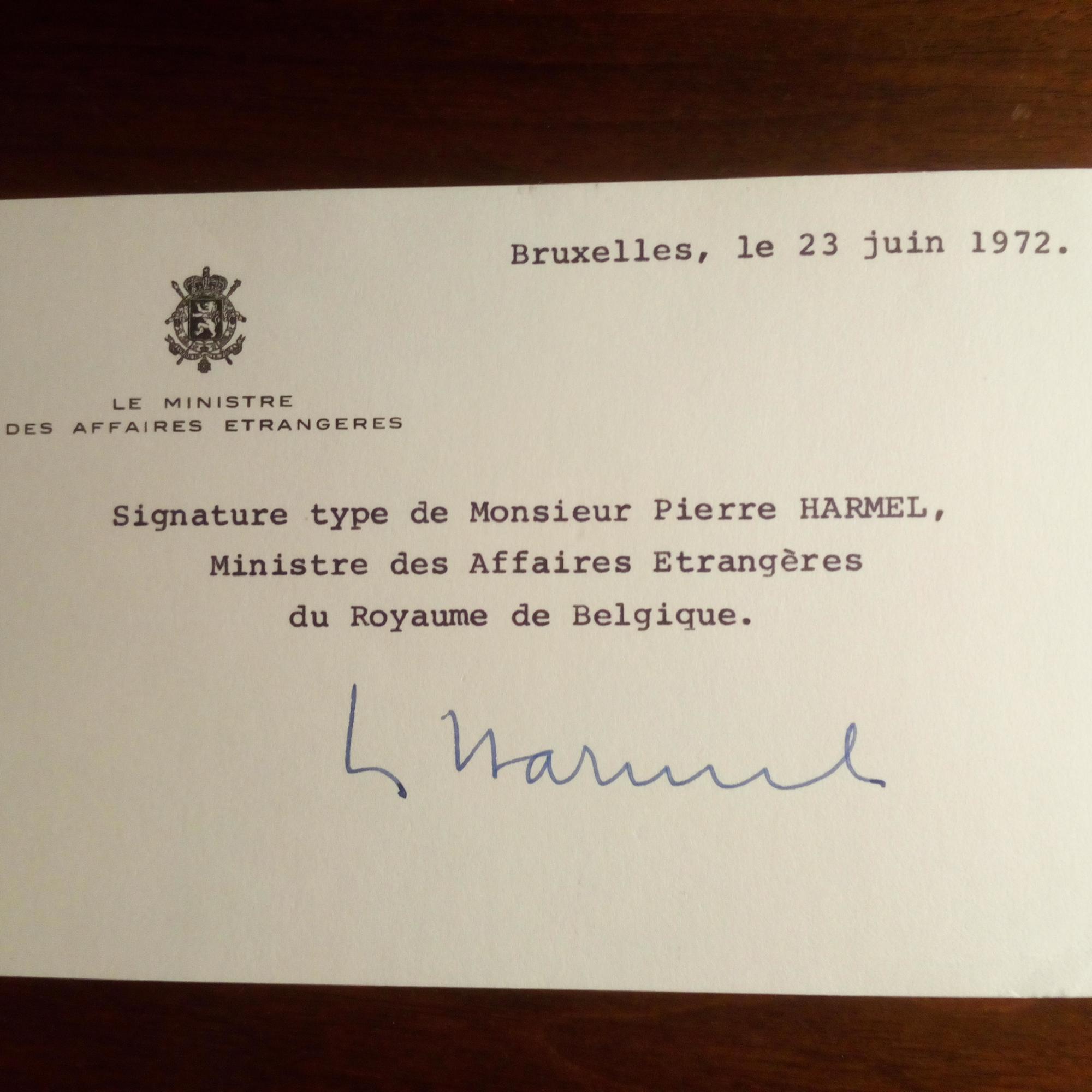 1911-2009, Ministerpräs. von Belgien und NATO-Stratege - Karte (Br.kopf als Außenmin.) m. U., Brüssel 23.6.1972.