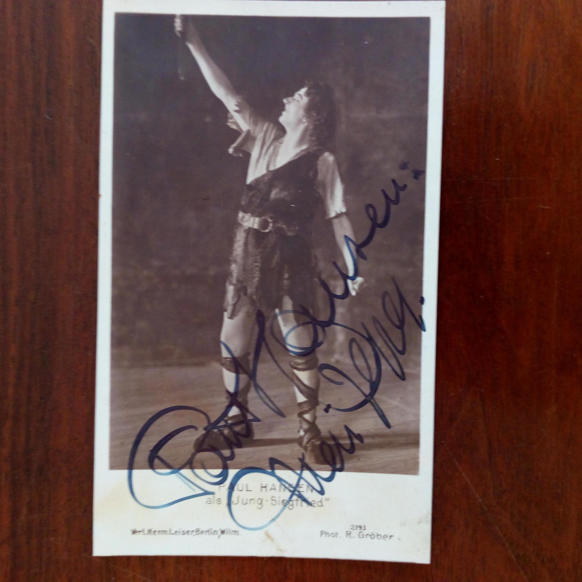 1886-1967, Sänger (Bass) - 8°quer-Blatt m. e. "Nosce te ipsum", U., O. und D. Charlottenburg 10.5.1919. Dazu Szenen-Pfo. (als "Jung-Siegfried") mit U. und gleichem D., Mont.spuren auf Rückseite.