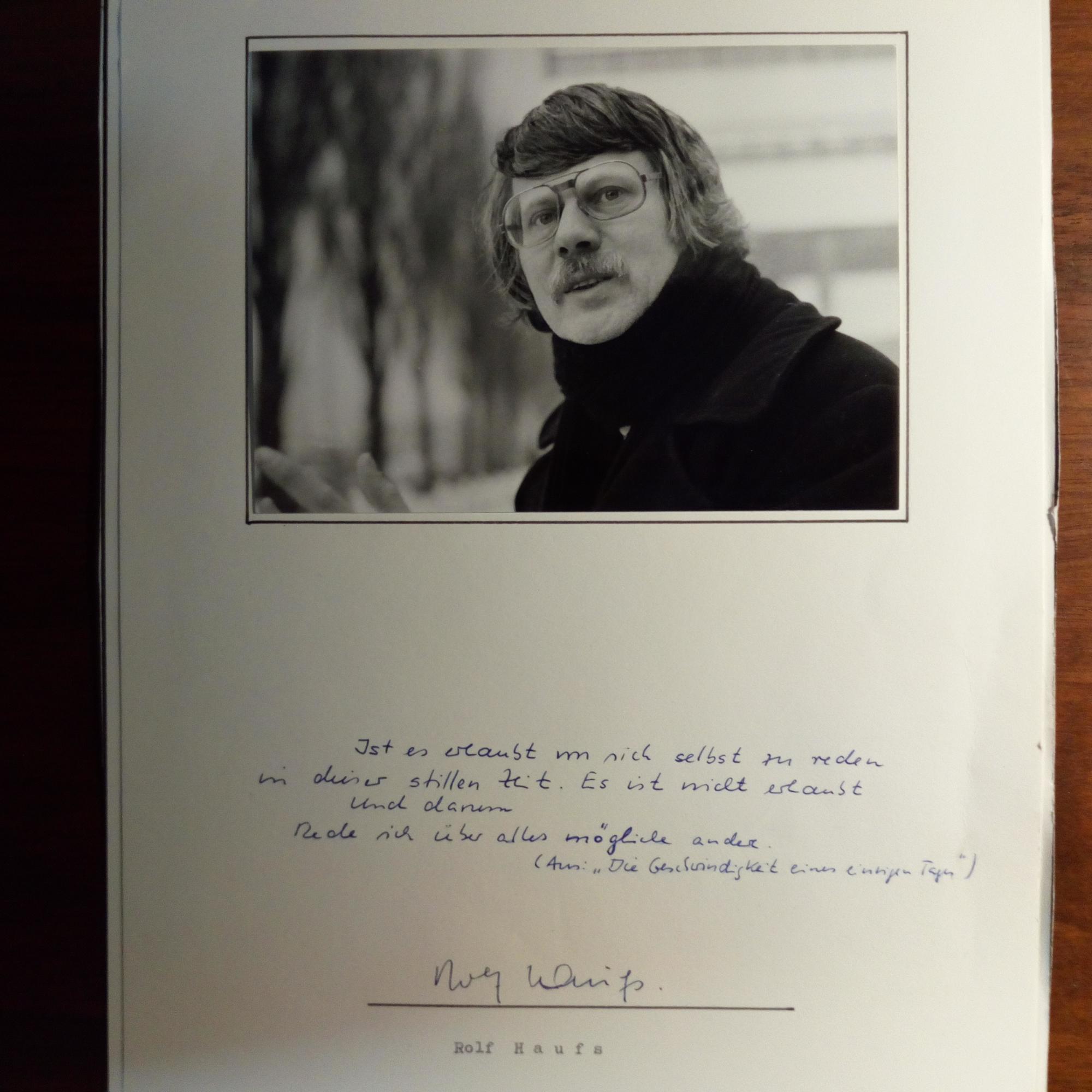 1935-2013, Schriftst. - E. Zitat (2 Sätze aus "Die Geschwindigkeit eines einzigen Tages") u. U. unter auf 4° mont. priv. Pfo. (quer).