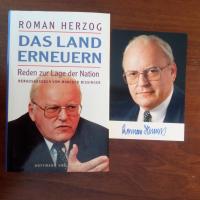 1934-2017, Jurist u. Politiker (CDU), Präs. des Verf.gerichts, Bundespräsident - Farb-Pfo. mit U. Beiliegt sein Buch "Das Land erneuern. Reden zur Lage der Nation", Hrsg. von Manfred Bissinger, Hoffmann & Campe., Hamburg 1997, verl.frisch, mit U. auf Vorsatz.