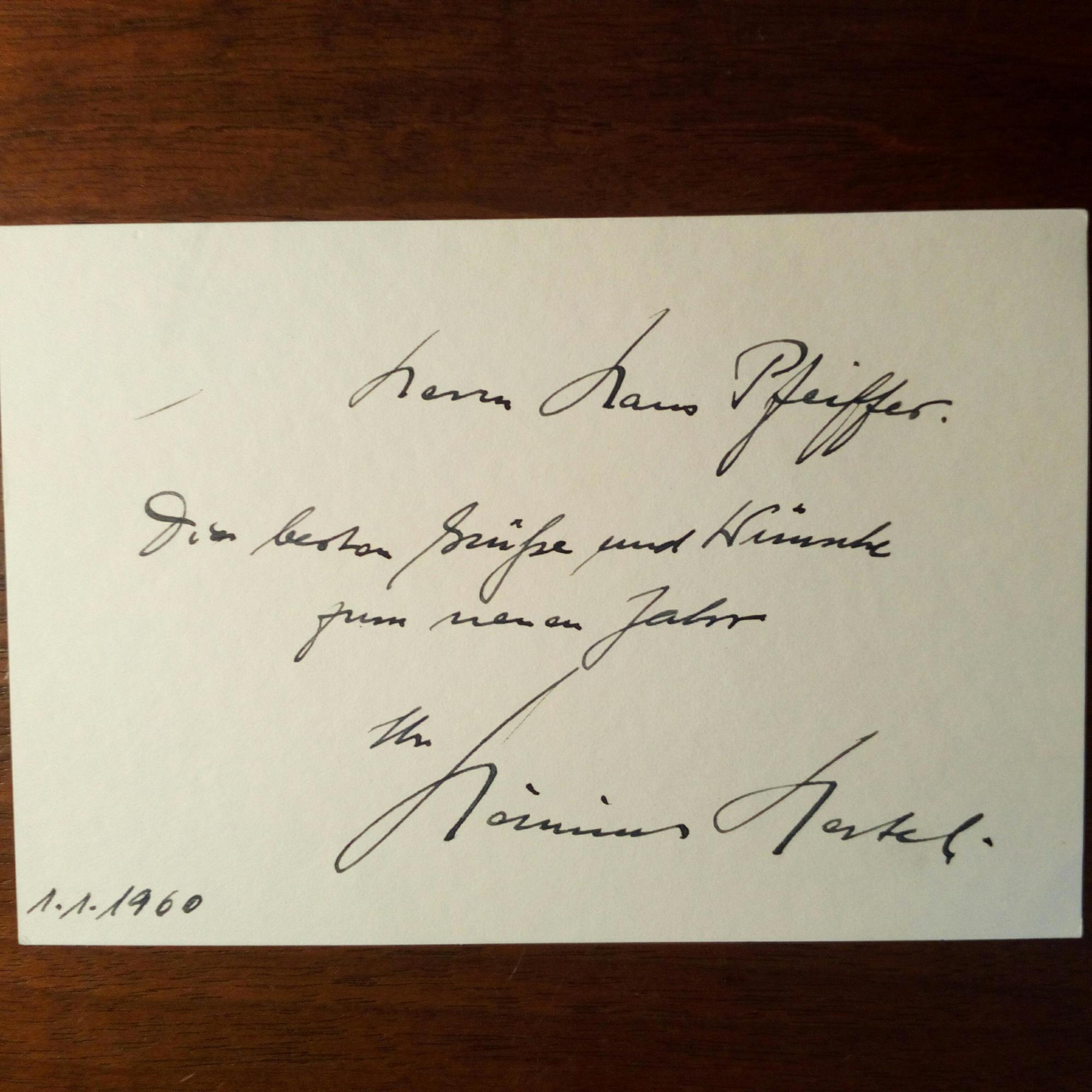 1901-82, Flugzeug-Ingenieur (Junkers) - Karte m. e. Neujahrsgrüßen, U. u. D. 1.1.1960, m. postal. Umschlag (Berlin).