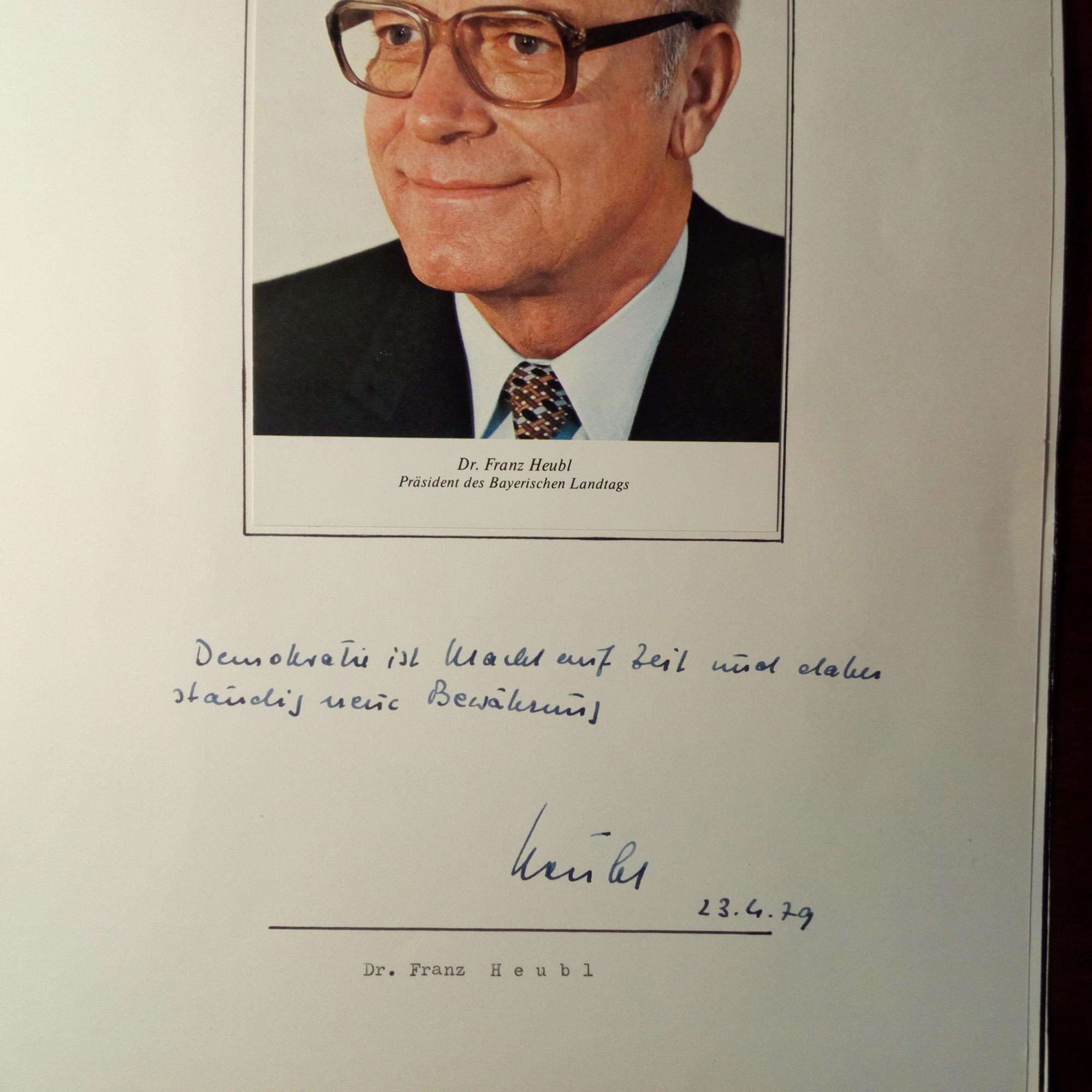 1924-2001, CSU-Politiker - E. Zitat, U. u. D. 23.4.1979 unter auf 4° mont. Farb-Pfo.