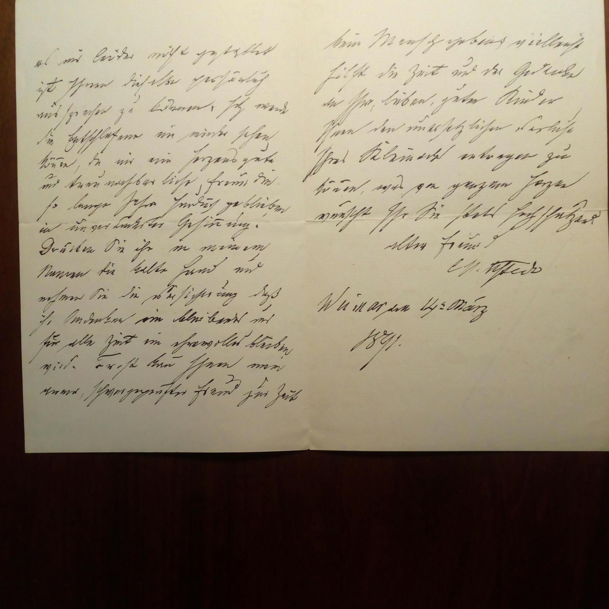 1818-92, Schauspieler - E. Br. mit U., Weimar 14.3. 1891, 2 ¾ S. 8°. Kondoliert "Breck" (?) ausführl. z. Tode seiner Gattin.