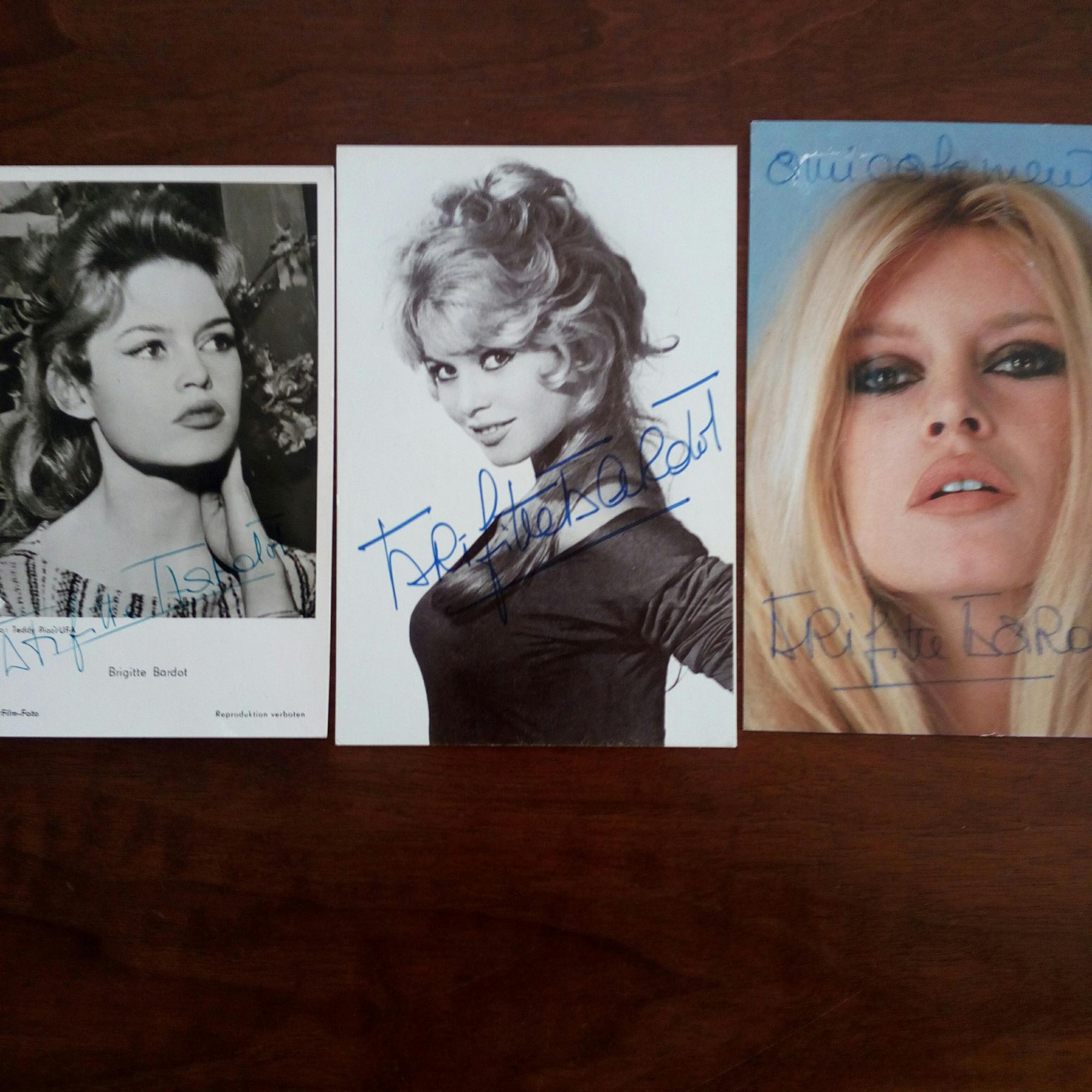 1934-2025, frz. Schauspielerin - 3 Pfo. (50er, 60er und 70er Jahre, letzteres in Farbe und mit kl. Schäden), je mit U.