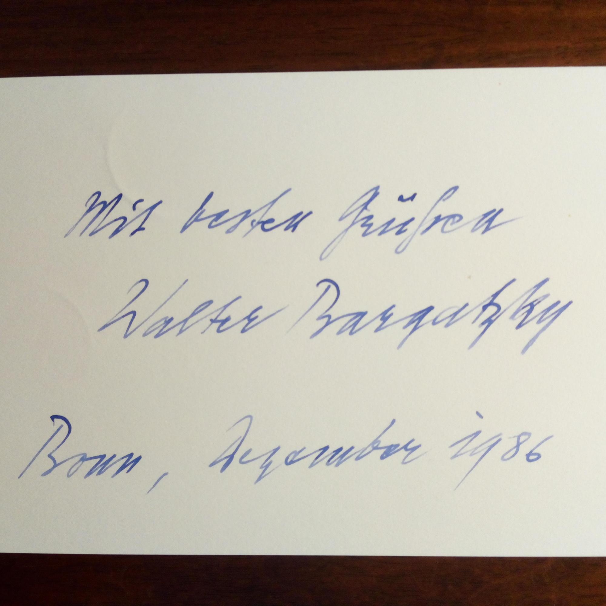 1917-95, Violonist, Kritiker und Intendant - Pfo. (Hochgl.) m. Widm. u. U. auf Rückseite, Düsseldorf 27.7.1988.