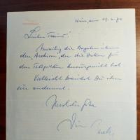 1911-86, österr. Schriftsteller - Typoskript m. vielen e. Verbesserungen, 1 S. 4°. Lt. e. kl. Begleitbr. m. U.: Anfang der 5. Szene seines Dramas "Leporello sucht einen besseren Herrn" (1985).