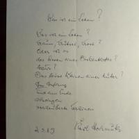 1919-2002, Schriftst. - E. Gedicht ("Was ist ein Leben?", 10 Z.) m. U. u. D. 21.3.1989, e. postal. Umschl. (gedr. Abs.).