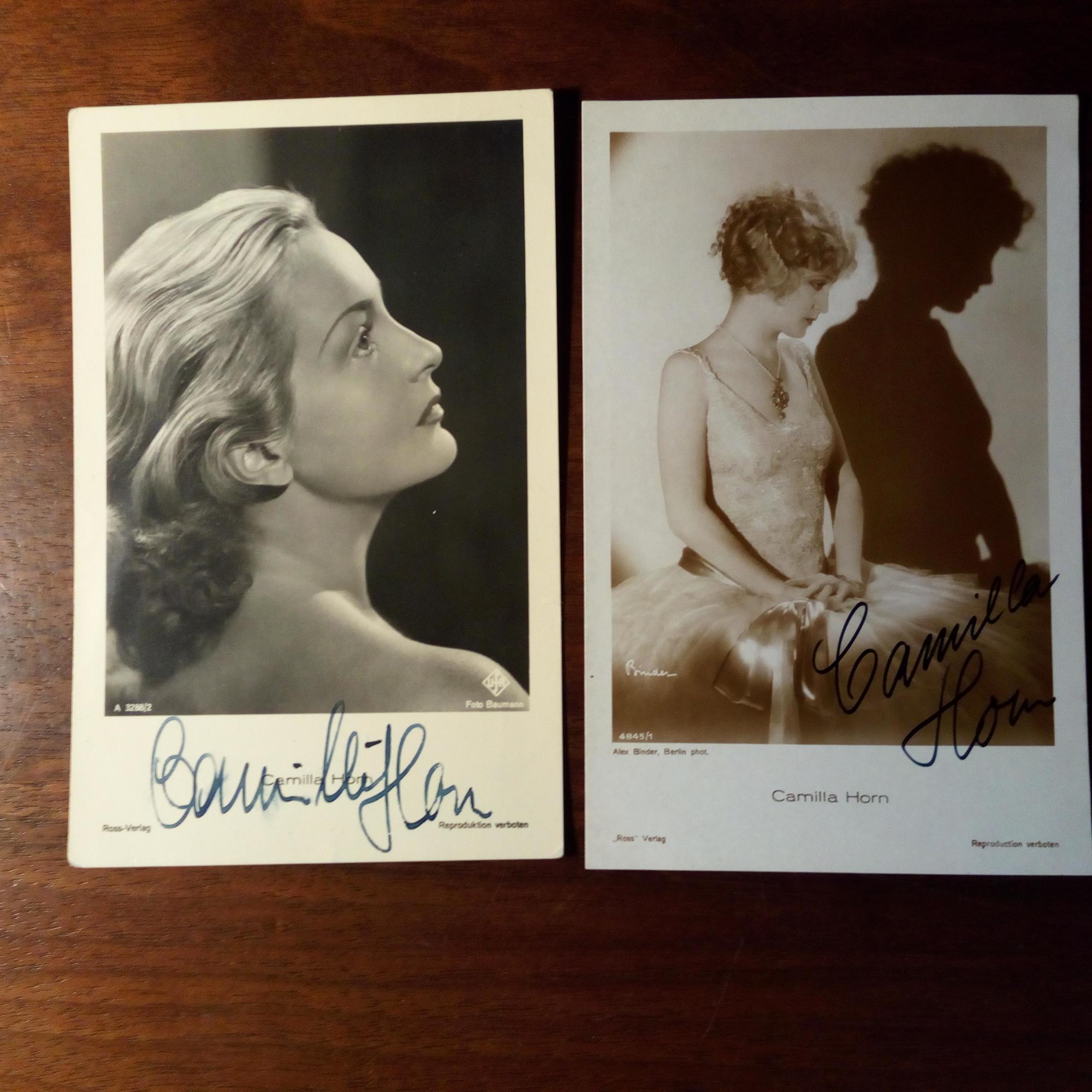 1903-96, Schauspielerin - Ross-Pfo. (um 1930) mit U., dazu ähnl. mit ger. Wischspur, auf Rückseite Stempel: "Autogrammbitten können in Zukunft lt. Verordnung vom 16.2.43 während des Krieges nicht mehr erfüllt werden". Von anderer Hand dazu: "Zentrale Rio!", dazu kl. Blatt mit weiterer U. und Zeitungsartikel.