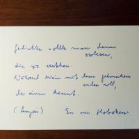 1905-87, Schriftstellerin - Karte mit e. "Gedichte sollte man denen vorlesen,/ die sie verstehen./ Während Wein mit dem getrunken werden soll,/ der einen kennt. (Sengai)" und U.
