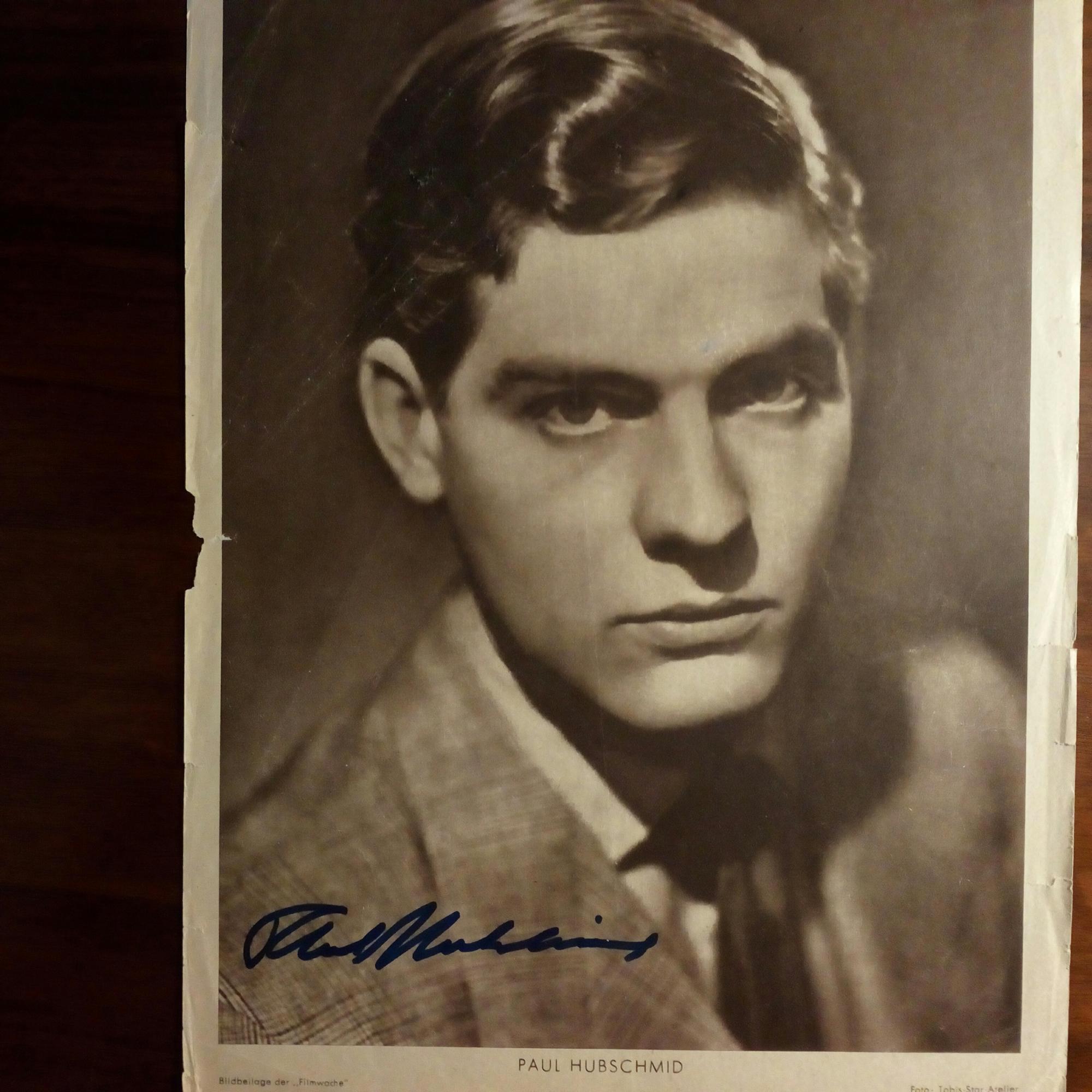 1917-2002, schweiz. Schausp. - Pfo. (ca. 4°, Druck, Beilage der "Filmwoche") mit U. Beiliegt Pfo. m. U. aus späterer Zeit.