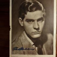 1925-85, US-Schauspieler - Druck-Pfo. (ca. 4°, aus Zeitschrift, hinterlegt) mit U. und 3 Pfo. mit Sekretärs-U.