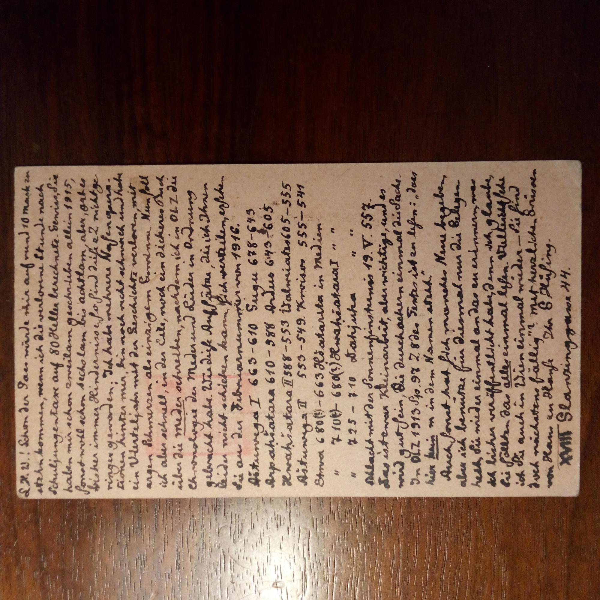 1869-1930, österr. Historiker und Philologe - E. postal. Postkarte (Marke und Stempel unkenntlich) mit U., klein und dicht geschr. An den Philologen und Forschungsreisenden Albrecht Wirth (1866-1936) in München: Bittet ihn um Zuarbeiten für Aufsätze über die Meder.