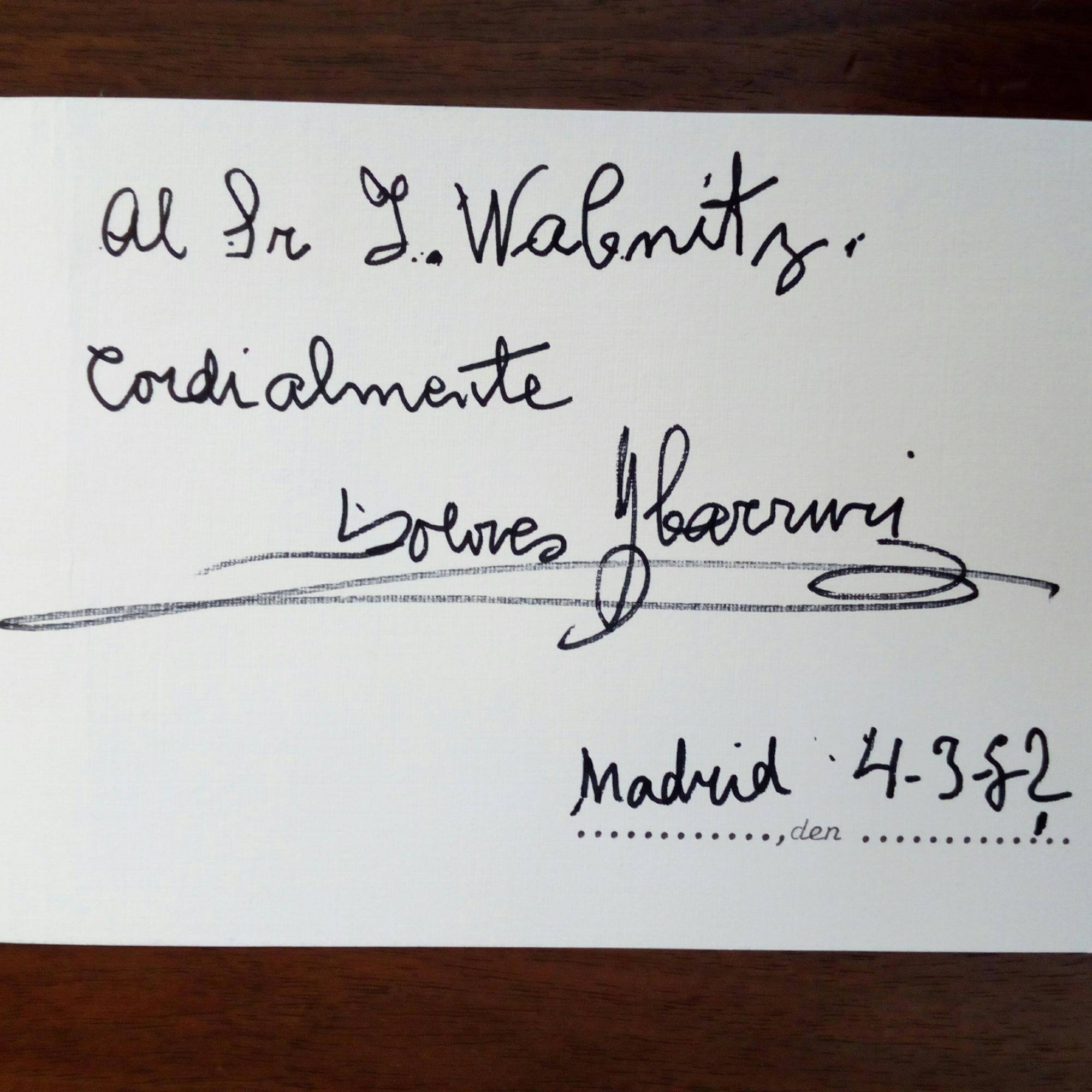 1895-89, Span. Bürgerkriegsheldin und kommunist. Politikerin ("La Pasionara") - Karte mit Widm. und U., Madrid 4.3.1982, mit postal. Umschlag (Luftpost).