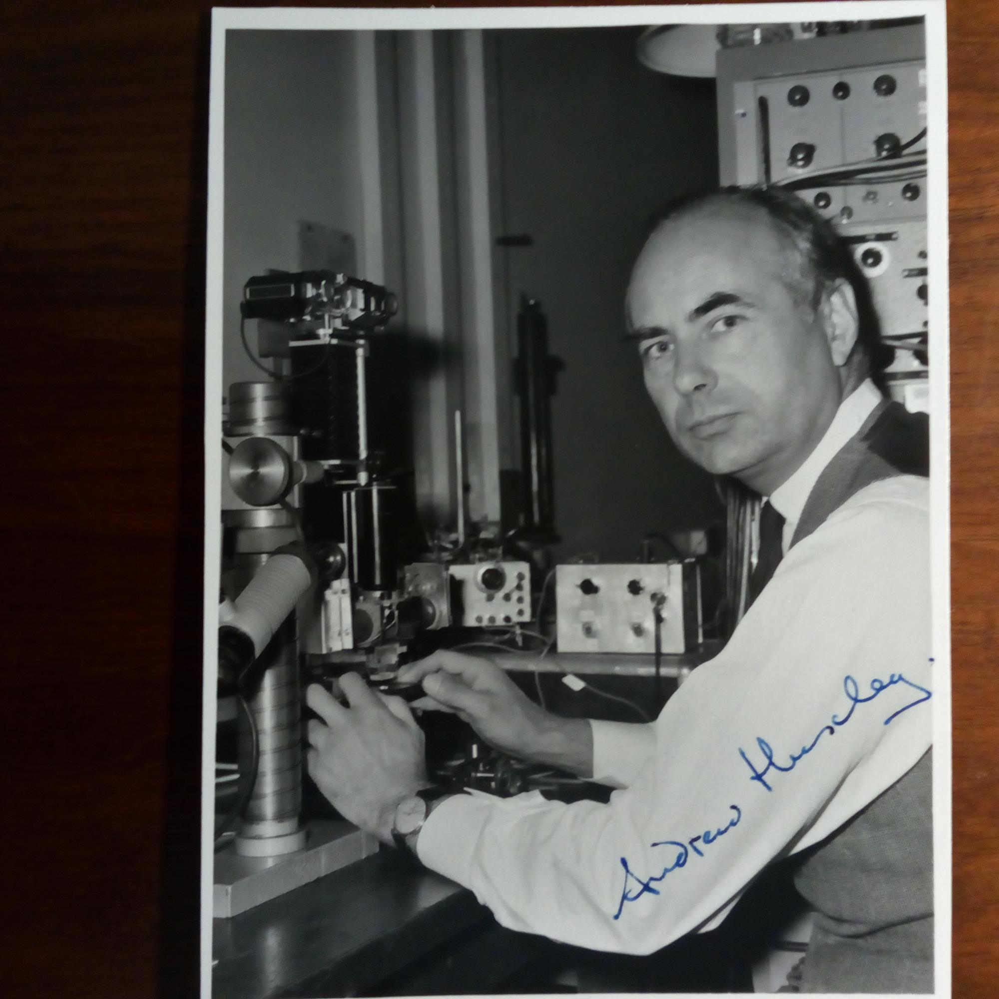 1917-2012, brit. Biophysiker - Pfo. (im Labor) m. U. M. Dedikationskarte seines Instituts, (London) 17.3.1975.