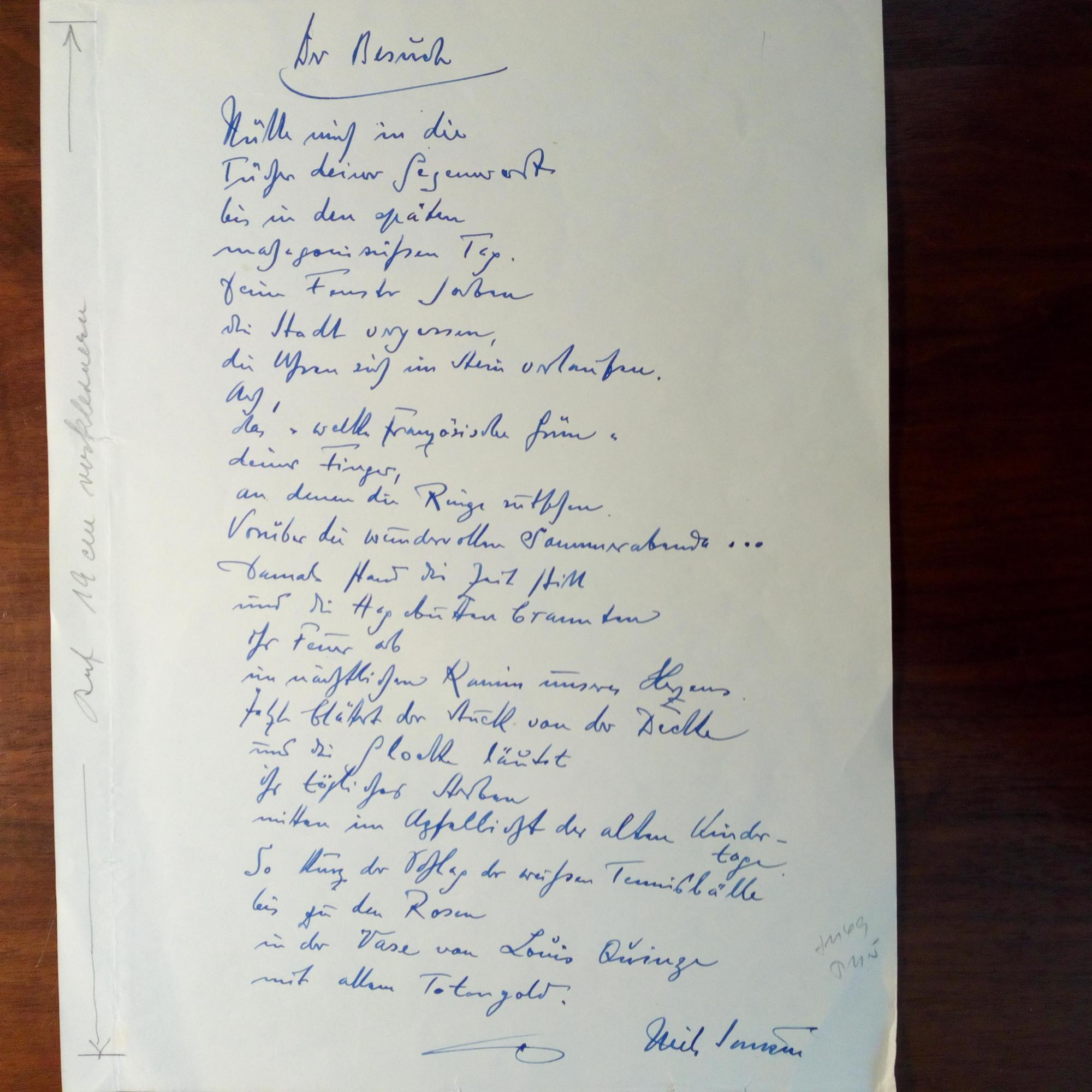 1897-1968, Lyriker - E. Gedicht ("Der Besuch", 23 Z.) mit U., 1 S. 4°, kl. Gebr.spuren und Druckangaben von and. Hand.