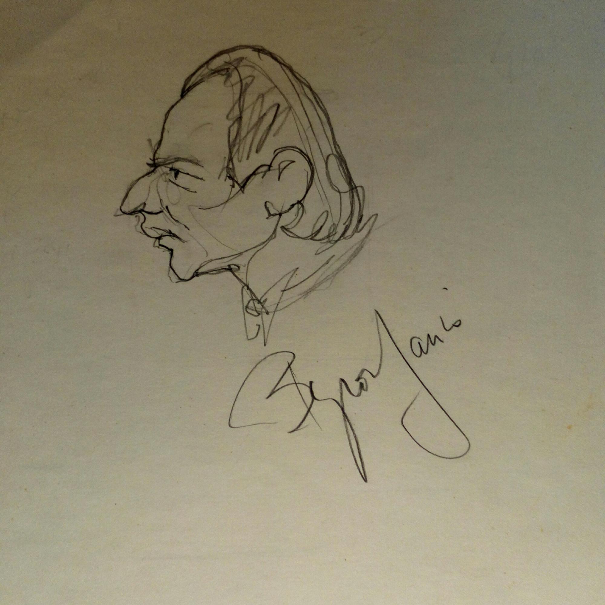 1928-2024, US-Pianist - 4°-Blatt mit detailliertem Bleistift-Porträt (Karikatur, Bleistift) mit U.