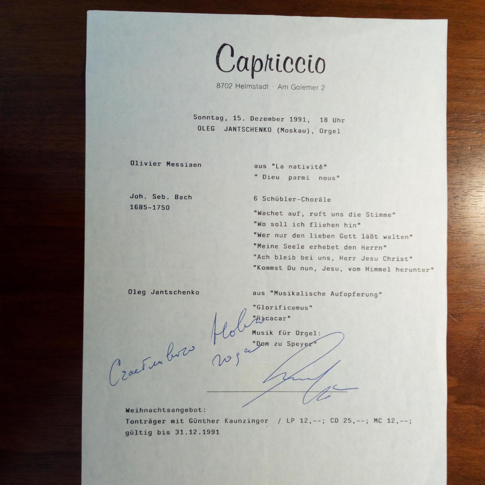 1939-2002, russ. Organist, Komponist und Dirigent - 4°-Programmblatt (Orgelkonzert in Helmstadt b. Würzburg am 15.12.1991) m. e. Grüßen u. U.