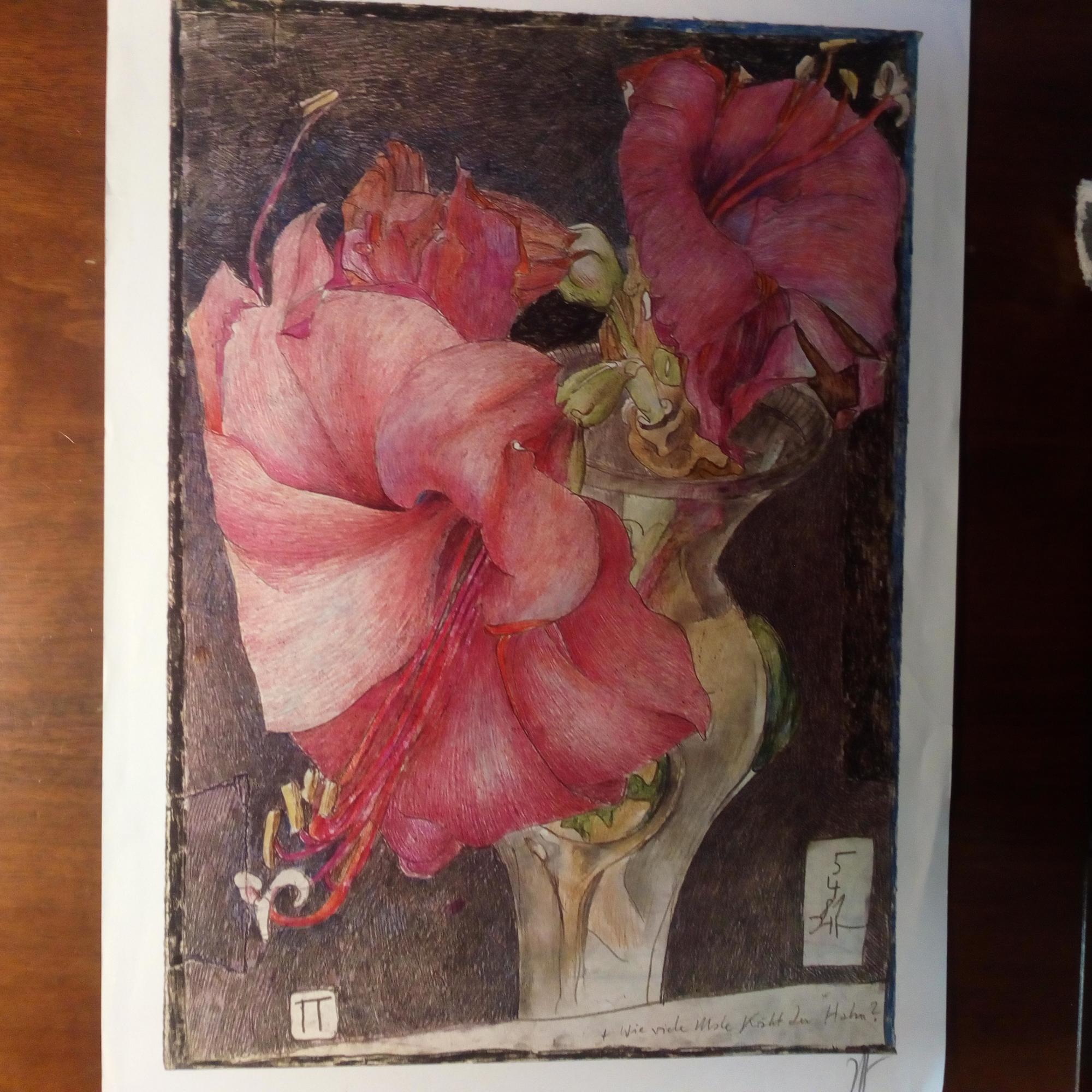 1929-95, Maler und Graphiker - Druck seiner Farb-lithographie "Wie viele Male kräht der Hahn" (ca. 31x43 cm, D. im Druck 5.4.1981) m. e. Bleistift-Monogramm, ger. Gebr.spuren.