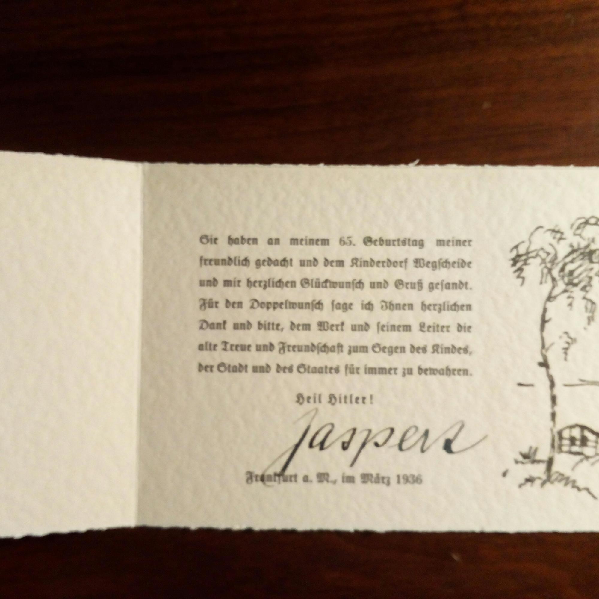 1871-1941, Pädagoge und Sozialreformer - gedr. Klappkarte des von ihm gegr. Kinderheims "Wegscheide" in Frankfurt (Dank für Geb.wünsche) mit U. (Frankfurt März 1936).