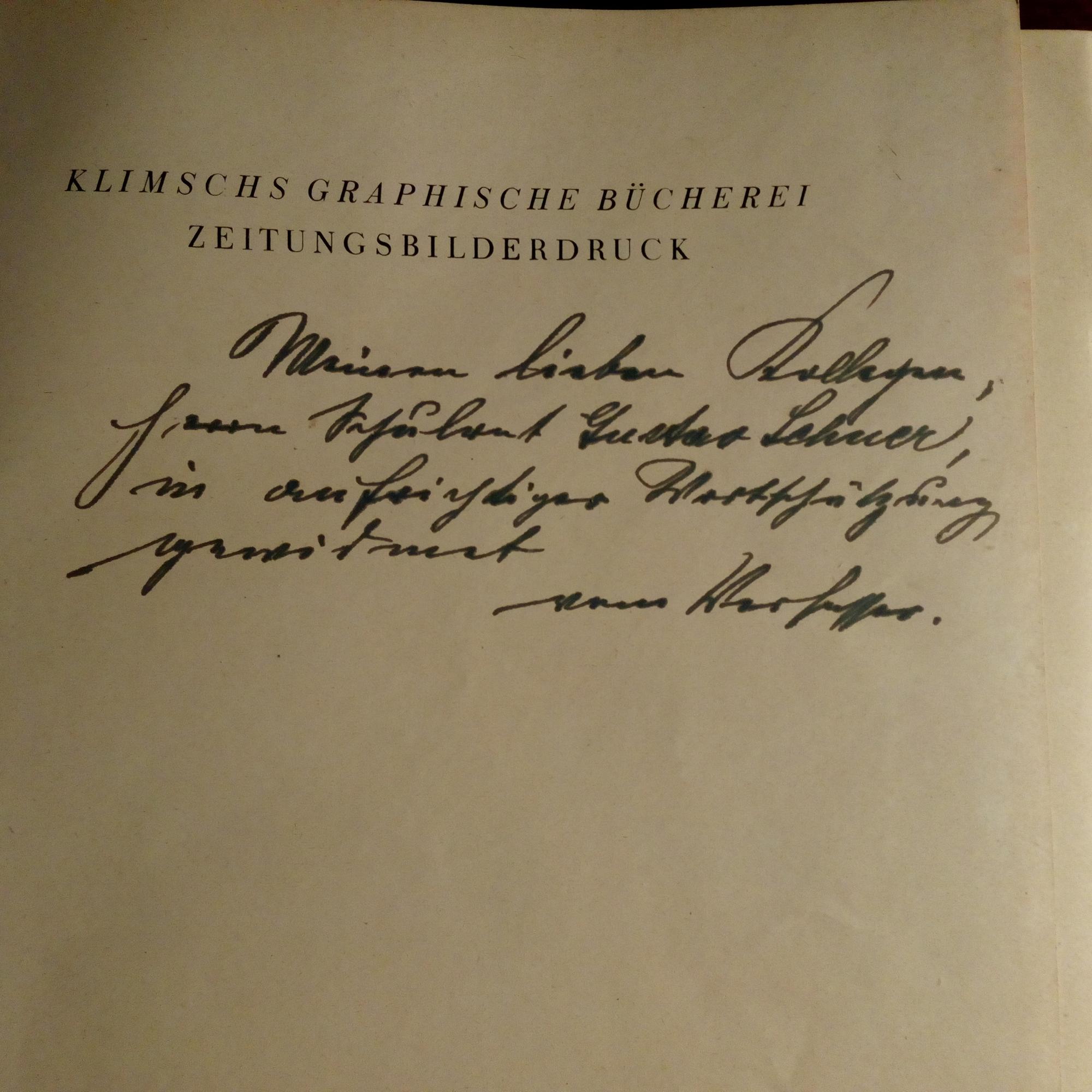 1879-1954, Maler und Graphiker - Widm. für den "lieben Kollegen" Gustav Lehner m. e. "vom Verfasser" auf Vortitel seines Fach-buches "Zeitungsbilderdruck", Klimsch-Verl., Frankfurt 1929.