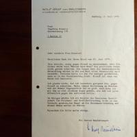 1907-93, Graf, General, Friedensforscher, Mitorganisator der Bundeswehr - Br. m. U., Hamburg 2.7.1979, 1 S. 4°, Br.kopf. An die Schriftstellerin und Friedensaktivistin Ingeborg Drewitz (1923-86) in Berlin: ...Ihre Absicht, etwas gegen Strauß zu unternehmen, ehrt Sie. Sicher würde sein "Marsch nach Bonn" die politische Szene nicht gerade erhellen ... Meine innere Entfernung zu München ... ist zu groß. Auch habe ich mit ihm zu viel direkten Ärger gehabt, als daß ich jetzt öffentlich gegen ihn auftreten sollte...