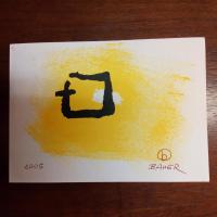 1938-2013, Maler und Bildhauer - Karte (Fragment eines Biografieblattes) mit Pfo. und Emblem, mit U.