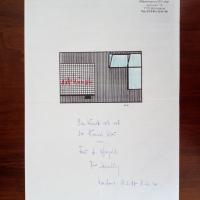 1944-2021, Schriftsteller - 4°-Blatt mit e. Tusche-Zeichnung ("Die Kunst ist rot/ Der Himmel blau") mit Widm. und U., Konstanz 11.5.1987, und 4°-Doppelblatt aus dem Manuskript zu seinem Roman "Ins Auge" (1987), mit Widm. Beides mit e. postal. Umschlag.