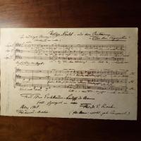 1862-1927, Komponist - 4°quer-Blatt mit e. Partitur (6 Notenz. "Heilige Nacht - aus dem Oratorium 'Von den Tageszeiten'"), mit e. Text, Widm. und U., März 1908, kl. Feuchtigkeitsspur. Beiliegen: Pfo. (4°), Werks-Verzeichnis und ausführl. Brief seines Sohnes.