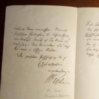 1834-1910, Reichsbankpräsident, Präs. der juristischen Gesellschaft - E. Brief mit U., Berlin 19.3.1895, 2 ½ S. 8°. Kondoliert der Witwe eines Mitglieds der Ges. in Berlin. Beiliegt Visitenkarte mit e. Zeilen auf Rückseite: 21.3.1895. Möchte an der "Beerdigungsfeier" teilnehmen.