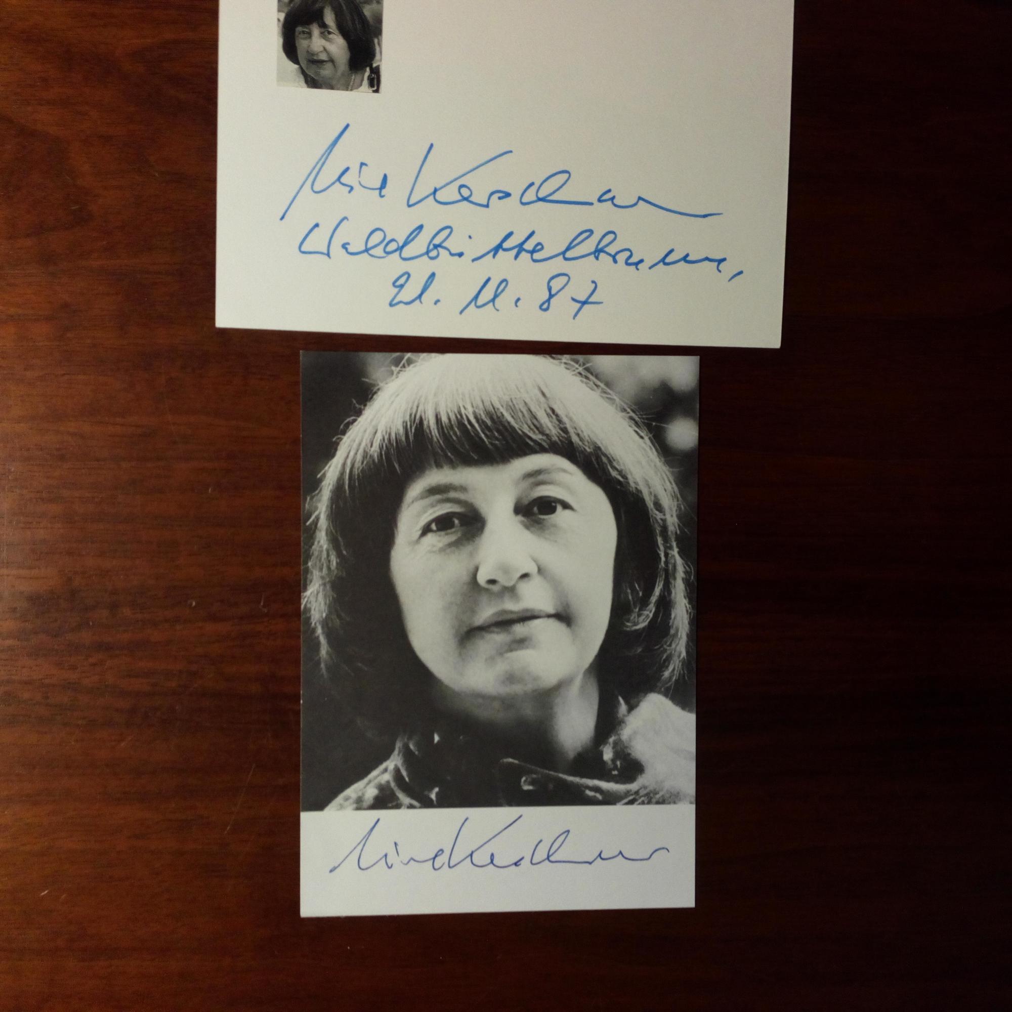 1925-2013, Jugend-Schriftstellerin - Karte m. mont. kl. Druck-Pfo., m. U., O. u. D. (bei Würzburg) 21.11.1987.