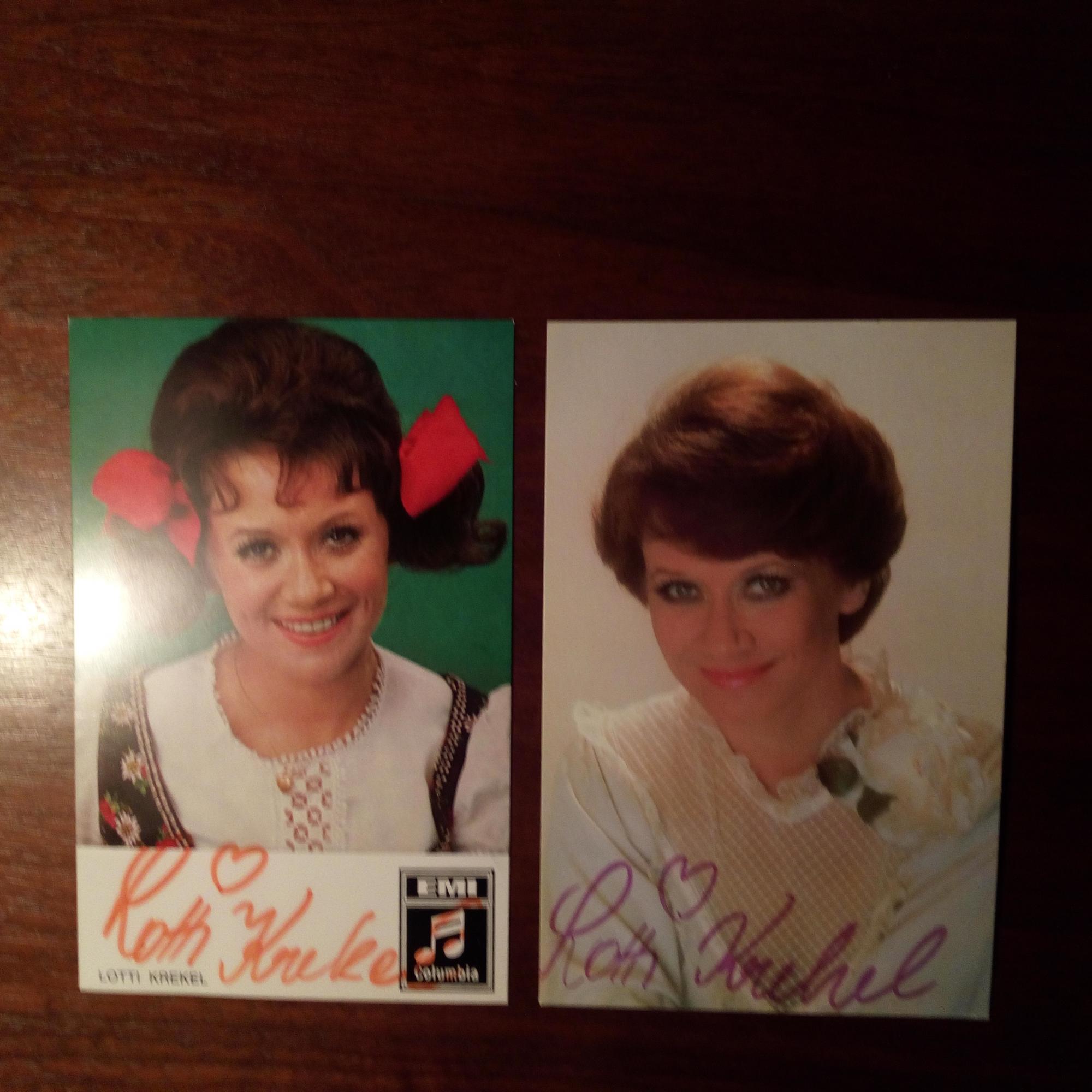 1941-2023, Schauspielerin, Schlager-Sängerin und Kölner Karneval-Star - Farb-Pfo. (ca. 1970) mit E. und U. Beiliegt ähnl. (ca. 1980) mit Widm. und U.
