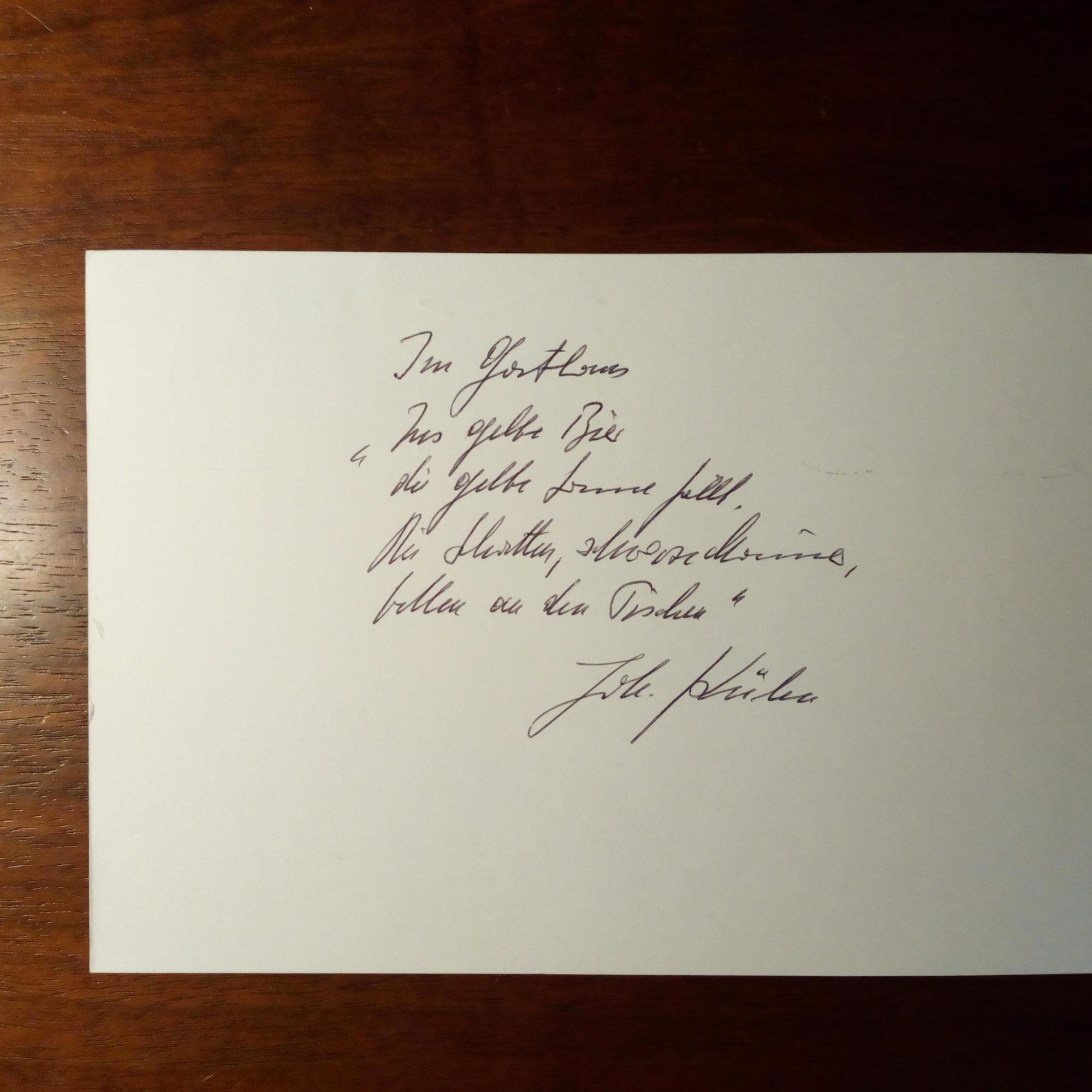 1934-2023, Lyriker - Karte mit e. Gedicht in Haiku-Form ("Im Gasthaus", 4 Z.) mit U.