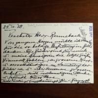 1890-1971, Maler und Graphiker - E. Brief mit U., (Bad Nauheim) 15.4.1958, 1 S. 8°, Br.kopf. An "Oberstudienrat Braun". ...Mein Partner Ess und ich haben einen schmückenden Auftrag von der Walgenmühle in Assenheim...Bittet um einen Merian-Stich, den wir als Unterlage gern verwendet hätten... Beiliegen: E. postal. Briefkarte, 2 S., kl. und dicht geschr., an die Gattin des Vorigen, u.a. mit einer graphologischen Analyse einer Handschrift der Malerin "Charlotte B.C." sowie ein Druckblatt mit Bild von ihm zum Neuen Jahr 1970 mit e. Grüßen und U.