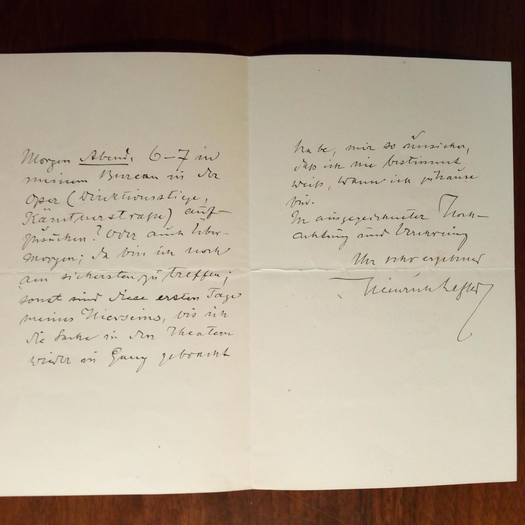 1863-1919, bild. Künstler - E. Brief mit U., (Wien) 14.9.1902, 2 ½ S. 8°. Als Ausstattungsleiter der Wiener Hofoper (Mitarbei-ter von Mahler): ...Leider bin ich auch Morgen Montag...den ganzen Tag durch den Theaterfrohndienst in Anspruch genommen... Lädt ihn für Übermorgen ein.