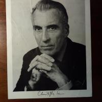 1922-2015, brit. Schauspieler ("Dracula") - Pfo. (ca. 4°, privat, um 1970, Knitterspuren) mit U.