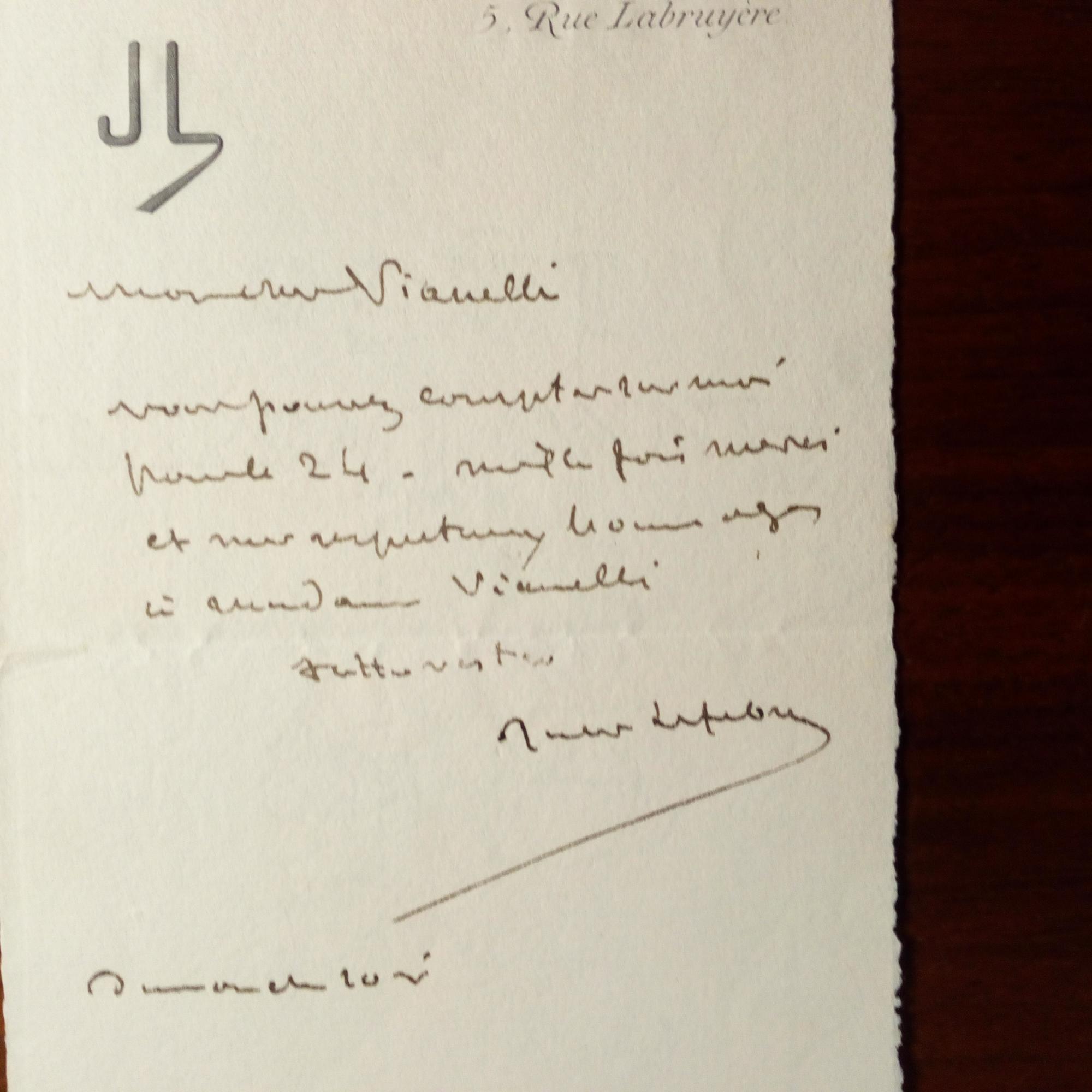 1836-1911, frz. Maler - E. Brief mit U., (Paris), ¾ S. kl. 8°. An den italien. Maler Alberto Vianelli (1841-1927). Teilt Termine mit und grüßt Madame V. Beiliegen 2 Visitenkarten an dens., je mit e. Dankeszeilen und Paraphe, eine beidseitig beschr.