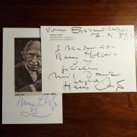 1893-1983, Schriftsteller - 10 kl. Autographen, je mit U.: Zeit.ausschnitte, Abbildungen seiner Aquarelle, Karte mit Dankzeilen, Karte mit mont. Pfo., e. postal. Postkarte und e. postal. Umschlag. Aus den 70er Jahren an den Hamburger Sammler Otto Mahnke.