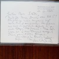 1893-1983, Schriftsteller - E. Br.karte m. U., (Fruthwilen, Schweiz, sein Wohnort) 21.6.1980, 1 ½ S., m. Fragment des e. Umschl. An den Kollegen Hellmut Stöber in Hamburg: Dankt für einen Bericht. ...Sehr gefreut hat mich die freundliche Äußerung der verehrten Kollegin Sloman ... Auf dem Ihren Zeilen beigegebenen Hamburgbild sind die schönen Kandelaber der Lombards-brücke noch vorhanden. Ein Jammer... Beiliegt e. postal. Karte (m. e. postal. Umschlag 1979) m. U. an denselben: Dank für Weihnachtswünsche.