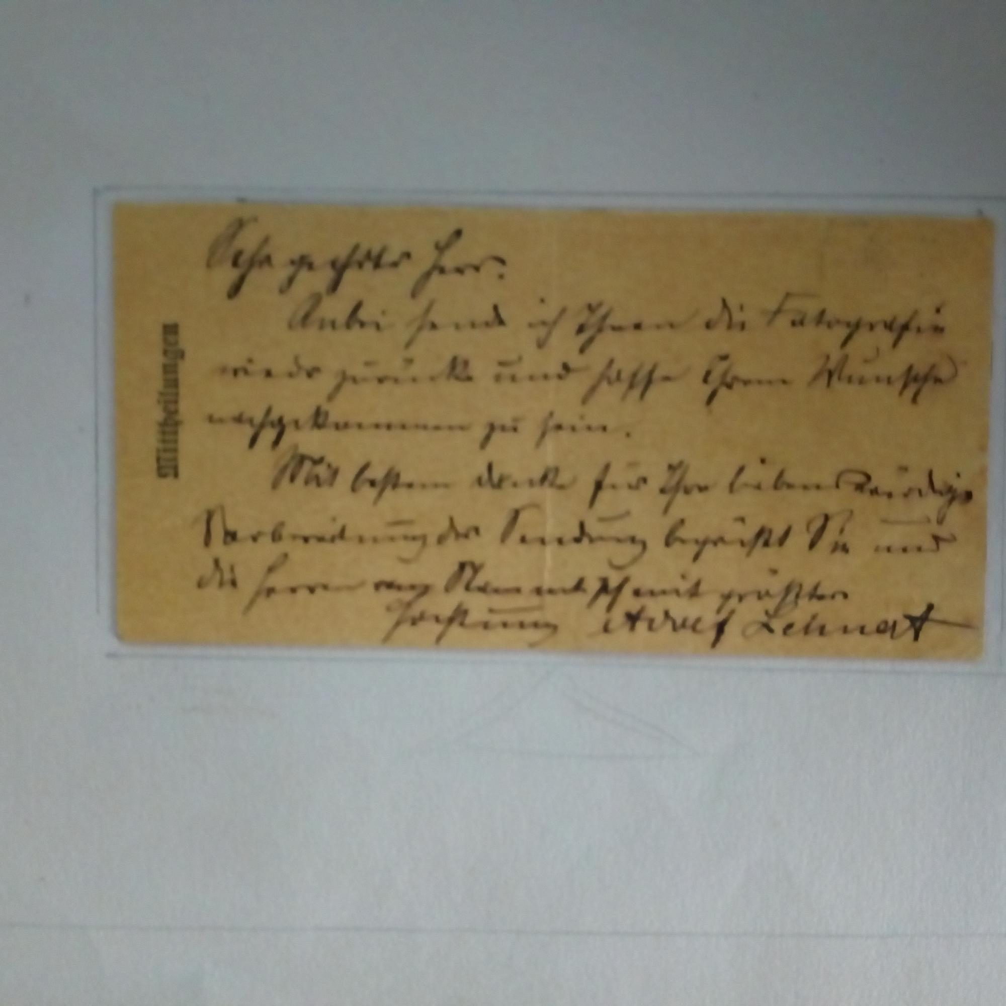 1896-1976, Leiter der Kriminalpolizei des Ruhrgebietes, Mitgl. der Résistance, nach Krieg beteiligt am Wiederaufbau der Polizei - E. Billett (Kärtchen) mit U., mont. Sendet einem Stammtisch ein Foto. Beiliegen 2 Bescheinigungen der amerikan. Militärbehörde.
