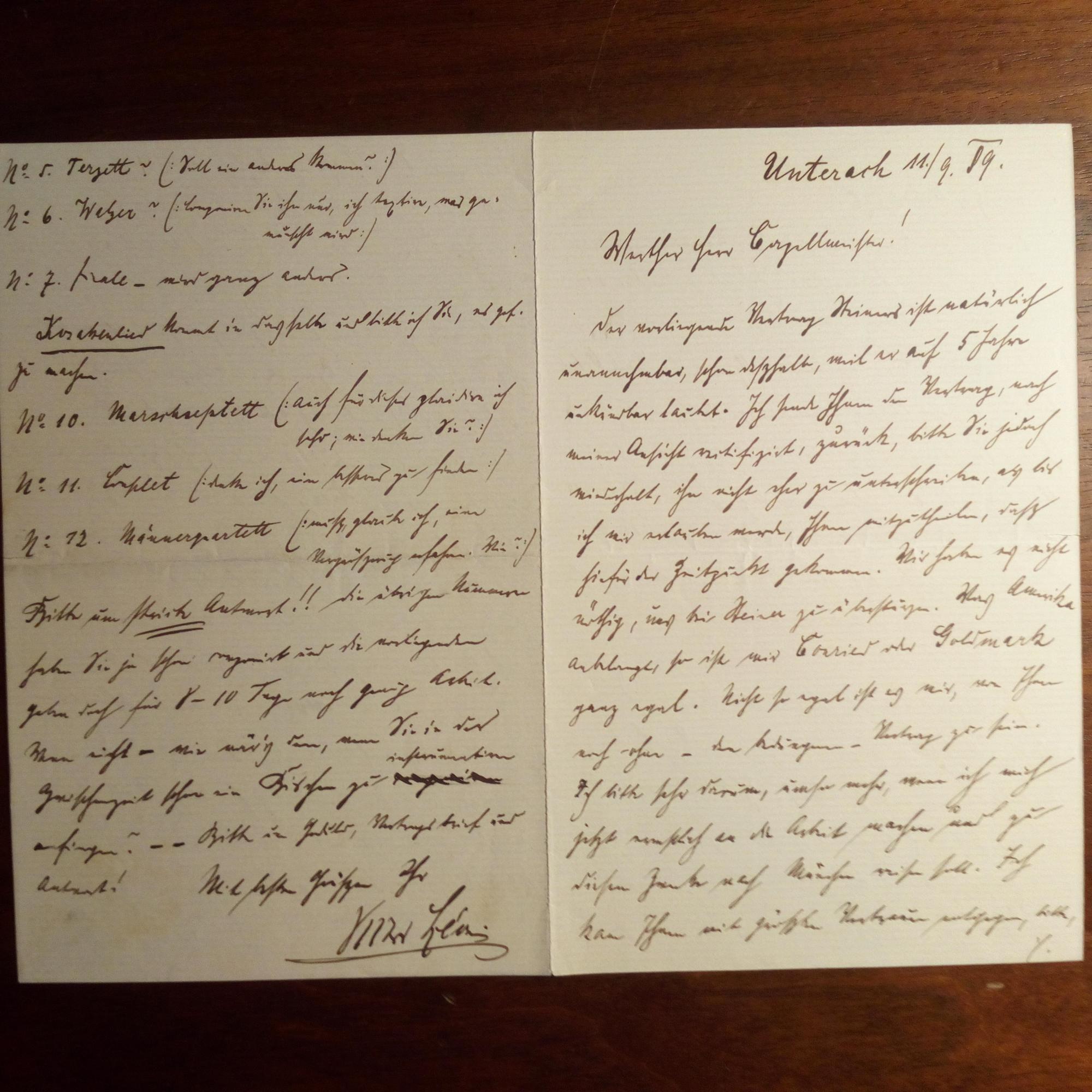 eigtl. V. Hirschfeld, 1858-1940, österr. Schriftsteller (bes. Operetten-Libretti) - 7 e. Briefe mit U., Unteraich und Wien 1889/90, zus. 19 S. 8°, dicht beschr., einer mit Briefkopf, und 23 e. Manuskriptseiten (versch. Formate) seines Singspiels "Nadja", dabei das "Entrée-Lied", Faden-Bindung, alles mit kl. Altersspuren. An einen Kapellmeister in Wien zur geplanten Uraufführung: Verträge, Besetzung (u.a. Girardi) u.a.