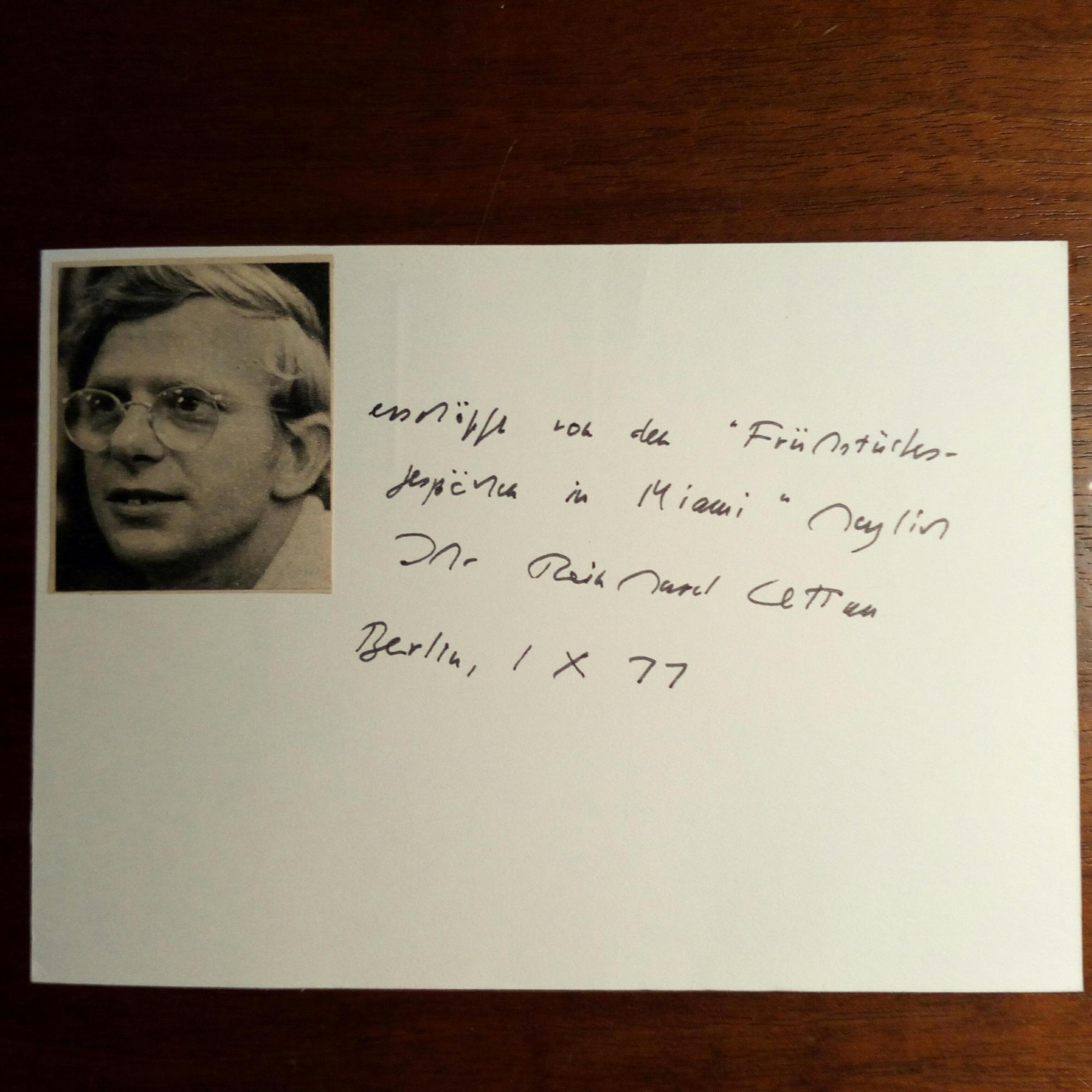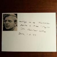 1929-96, Schriftsteller, zeitweise Literaturwiss. in USA - E.Manuskript mit U., 1 S.4° (Notiz: "ca.1995"), "Teilnehmer des Festes", Transkription liegt bei.sehr frühes kl. Druck-Pfo. (aus Zeitschrift) m. U.