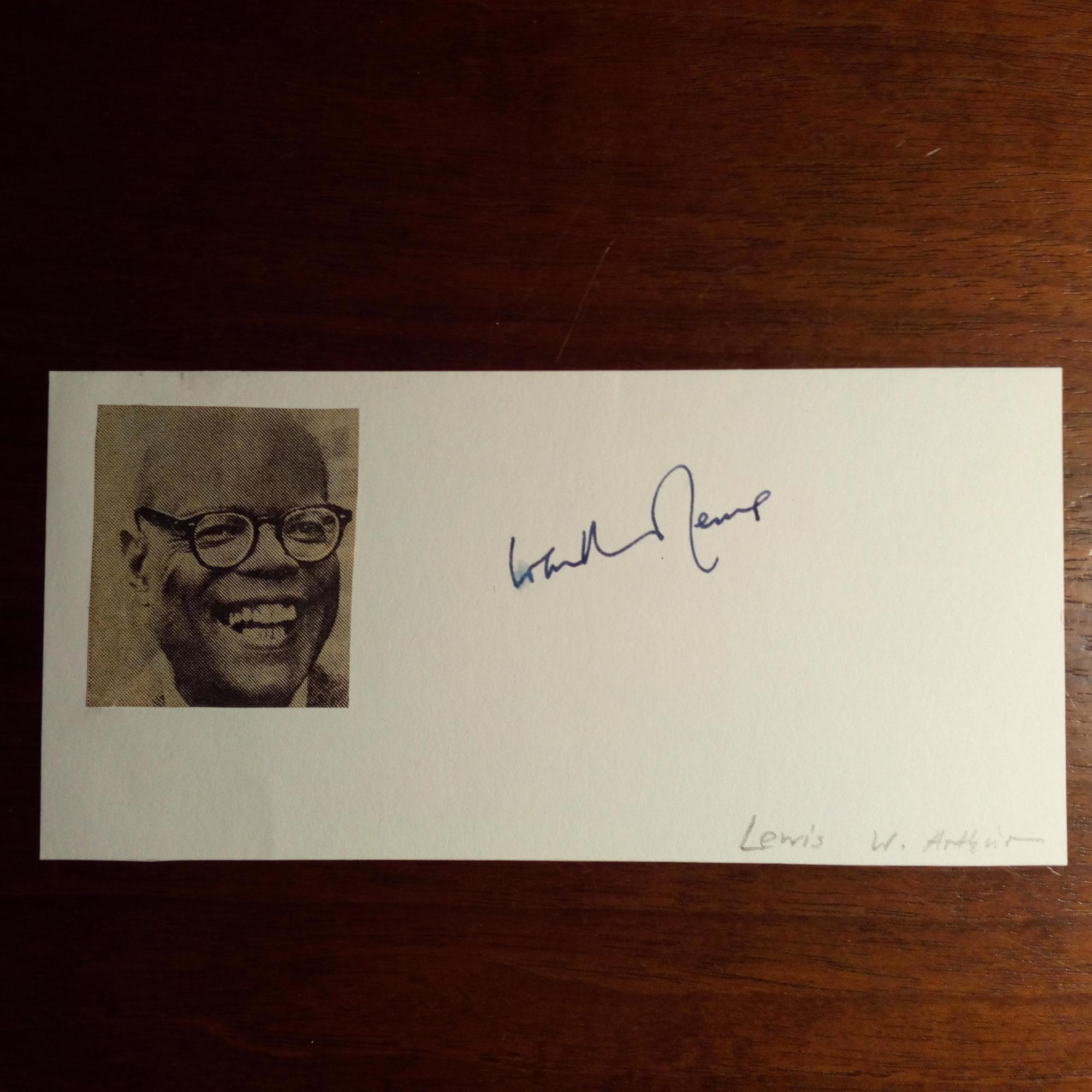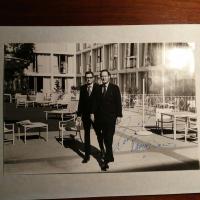 1923-2008, US-Unternehmer, Chef der Hilton-Hotels - Großes Foto von sich und dem Mitinhaber, seinem Bruder Werner L.(1921-2016) mit beiden U. Mit Begleitbrief mit U., (Las Vegas) 5.6.1981, persönl. Br.kopf. Beiliegen: Blatt mit 5 U. von anderen und Visitenkarte mit U., Begleitbrief mit U., 18.7.1984 ...habe ich schnell einige Autogramme von meiner Umgebung zusammenstellen lassen... sowie Brief mit U., Br.kopf des Hotels, betr. eines Autogramms von Liberace.