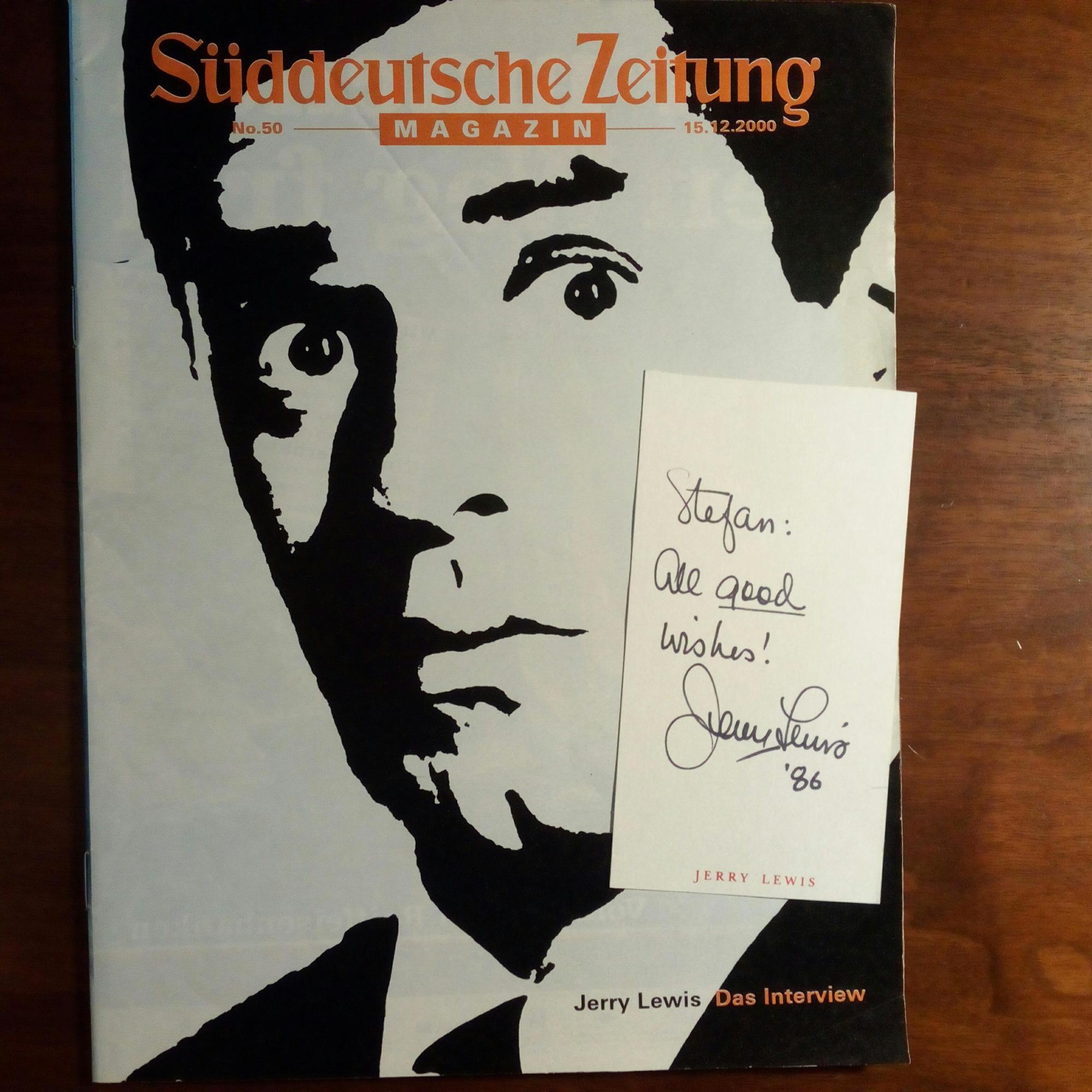1926-2017, US-Komiker - Ded.karte mit Widm., U. und Jahr 1986. Beiliegt SZ-Magazin mit großem Interview (15.12.2000).