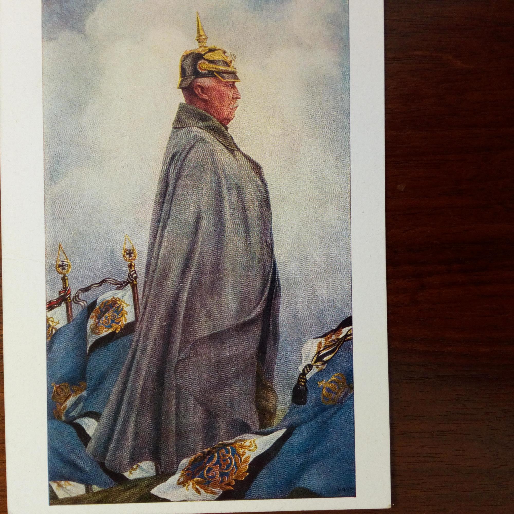1877-1968, Publizistin, Witwe von Erich L., Gründerin von deutschkirchl. Vereinigungen - Ansichtskarte (Pfo. ihres Mannes nach einem Gemälde). "Lindings 1944...Dank für das warme Gedenken an des Feldherrn Geburtstag u. Heidenschatzspende"...". 2 kl. Beilagen.