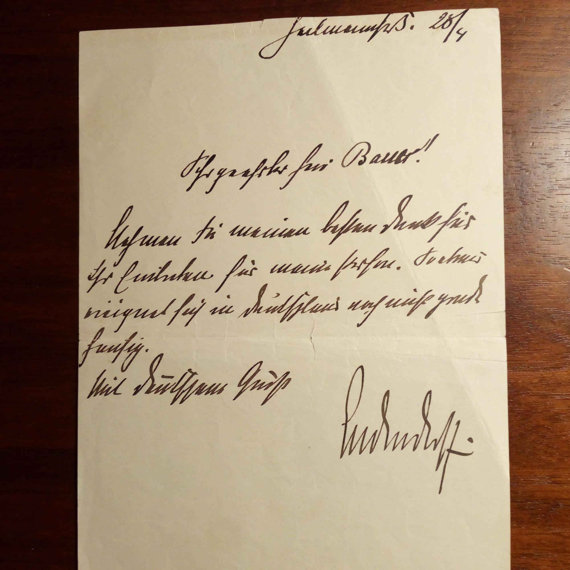 1865-1937, General und völkischer Politiker - E. Kurzbrief mit U., ¾ S. 8°, beschn. mit minimalem Verlust. Wohl an den Weimarer Maler Hans Bauer (1883-1967): Dankt für dessen Einsatz für ihn: ...So etwas ereignet sich in Deutschland noch nicht gerade häufig...