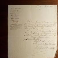 1765-1840, frz. General, Marschall des Kaiserreiches - Brief mit U., Paris 19.7.1824, 1 S. kl. 4°, unterer Rand beschn., Briefkopf als Großkanzler der Ehrenlegion an einen Herrn, der auf seine "décoration de Chevalier de l'Ordre royal de la Légion d'Honneur" wartet: ...ainsi que je vous l'avais promis, je l'ai recommandée au Ministre des finances, et je desire sincèrement qu'elle soit acceuillie favorablement d. S. Exc. ...